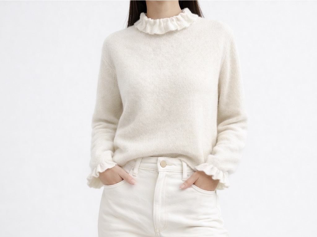 Jersey de punto con mezcla de tejidos que aportan suavidad y calidez. Diseño con cuello alto ligeramente vuelto y acabado confortable. Corte recto y versátil, ideal para looks diarios en temporadas frescas.