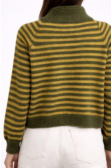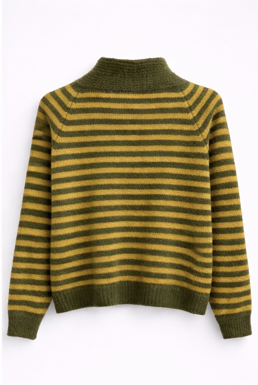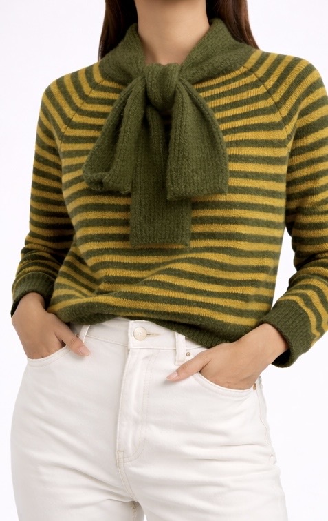 Jersey de punto con rayas y cuello envolvente tipo bufanda, cómodo y original.